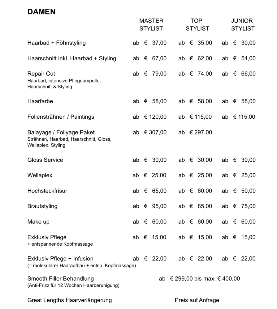 Wir sind uns sicher, dass es auch in ihrem Sinne ist, mit uns einen starken und verlässlichen Friseur, an ihrer Seite zu haben!